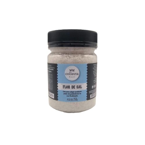 Flor de Sal Collecta Brasil 250g A Flor de Sal Collecta Brasil é uma fina camada de cristais de sal que se forma na superfície das salinas.