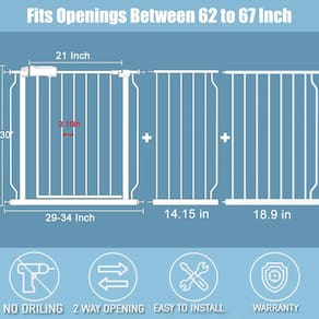 - ?Largura ajustável?Nosso portão branco estreito para bebês pode ser expandido para caber em aberturas de 62 a 170 cm de largura. Tem 76 cm de altura. Porta de segurança infantil para escadas, portas e corredores para impedir que bebês, crianças ou animais de estimação subam. Aviso: meça o tamanho da abertura antes de comprar para garantir o ajuste adequado.