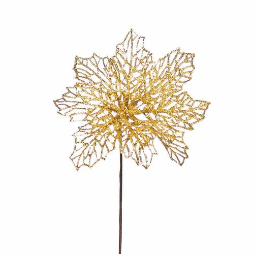Poinsetia Trabalhada Com Petalas Vazadas Em Glitter Ouro. Diametro De 14Cm - Composição/Matéria Prima - 85% Plástico 10% Metal 5% Papel - Cor Predominante - Ouro - Cod. Cromus - 1592755 - Instruções Adicionais e Limpeza - Limpar com espanador