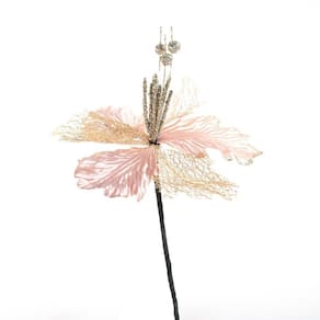 - 1 Flor Artificial Rosa Com Dourado 30cm;