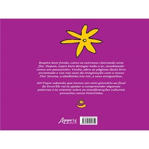 Respire bem fundo, como se estivesse cheirando uma flor. Depois, sopre bem devagar todo o ar, assobiando como um passarinho. Venha, abra as páginas deste livro encantado e voe nas asas da imaginação com a nossa Flor Serena, a abelhinha tric tric, e seus amiguinhos. Ah! Fique sabendo que temos um mini glossário ao final do livro! Ele vai te ajudar a compreender algumas palavras e te orientar sobre as manifestações culturais presentes nesta historinha. Marca: ARTERINHA EDITORA Ean: 9786525051352
