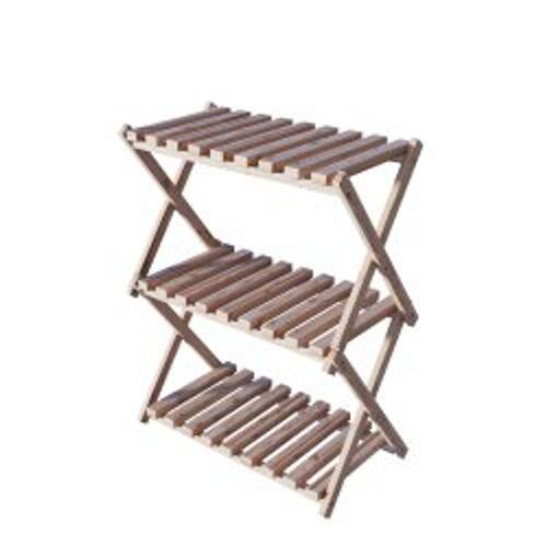 A estante possui prateleiras que são sarrafeadas e permitem a ventilação entre os vasos das plantinhas!
