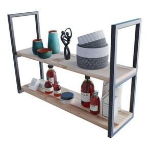 Projetado em estilo industrial, possui furações para instalação no teto (flutuante) ou na parede (prateleira), tendo suas prateleiras feitas de madeira maciça, garante maior resistência e durabilidade ao produto.