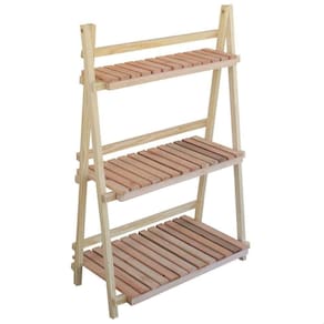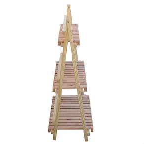 A estrutura dobrável facilita o e armazenamento, tornando-a prática e versátil. Ideal para quem deseja expor plantas de maneira organizada e elegante, sem abrir mão da durabilidade e beleza da madeira natural.