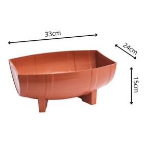 Características - Floreira * Modelo: F33C Meio Barril * Dimensões: 33x 24x15cm * Altura: 15 cm * Comprimento: 33 cm * Largura: 24 cm * Capacidade: 6,5 Litros * Formato: Design Meio Barril * Material: Plástico * Cor: Cerâmica