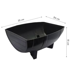 Características - Floreira * Modelo: F33C Meio Barril * Dimensões: 33x 24x15cm * Altura: 15 cm * Comprimento: 33 cm * Largura: 24 cm * Capacidade: 6,5 Litros * Formato: Design Meio Barril * Material: Plástico * Cor: Preta