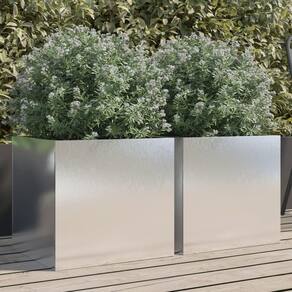 decorativos?: Plantadores retangulares prateados melhoram a estética do jardim, varanda e pátio -?