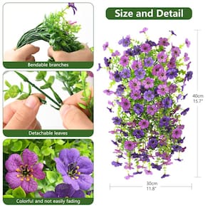 - Flores artificiais para uso ao ar livre: as plantas artificiais ao ar livre são feitas de tecido de seda de alta qualidade, que é resistente aos raios UV e a todos os climas. Flores de seda falsas para o exterior podem ficar lindas por mais tempo do que flores frescas. Transforme sua casa com as requintadas flores penduradas, beleza natural em todos os lugares