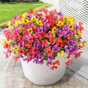 Flores artificiais artificiais para decoração de primavera ao ar livre, flor de seda falsa, planta de eucalipto, resistente a UV para plantador externo, varanda, jardim, decoração de pátio (12 pacotes) - ?O pacote inclui?12 ramos de buquê de plantas artificiais de flores artificiais, no qual os ramos e flores são destacáveis! Livre para você montar e combinar (pote não incluído) - ?Alta aplicabilidade?Os ramos do nosso buquê de flores falsas são embutidos com arame, para que possam ser dobrados e moldados à vontade, fáceis de fazer você mesmo, adequados para todos os tipos de vasos de flores e plantadores - ?Beleza eterna?As flores artificiais Homsunny para uso ao ar livre não precisam de manutenção! Sem preocupações com irrigação! Nunca desbota. Resistente a UV e intempéries! Beleza florescente em todas as estações - ?Qualidade superior?As pétalas são feitas de seda de alta qualidade, as folhas de eucalipto são feitas de plástico, cores brilhantes e formas realistas, adicionando cores naturais vibrantes à sua casa - ?Solução perfeita para decoração de casa?Nossas flores artificiais são adequadas para qualquer lugar, todas as cenas! Como jardins, varandas, pátios, varandas, etc., embelezam perfeitamente sua casa