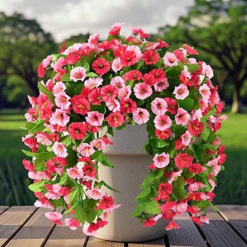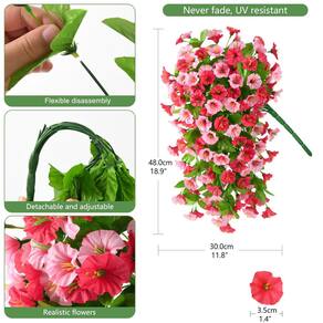 Flores artificiais para decoração de primavera ao ar livre, glória da manhã de seda sintética, flores falsas penduradas resistentes a UV, aparência real para varanda, gramado, jardim (pacote com 2) decoração de primavera (pacote com 2) - Pacote de plantas falsas penduradas: 2 pacotes de flores falsas penduradas, comprimento total de 48 cm. Diferentes comprimentos de galhos são diferentes, folhas espessas e alguns pequenos ramos com muitas folhas, fazem com que pareça muito vívido e tridimensional. - Material: nossa planta artificial para pendurar é feita de materiais realistas e de alta qualidade. A glória da manhã de seda falsa é muito real, com cores distintas e cheia de vitalidade. Pétalas macias, textura de folha clara, decoração perfeita para ambientes internos ou externos. Adicione uma vista ao terraço ou varanda da sua casa durante todo o ano. - Resistente aos raios UV: as flores artificiais ao ar livre são resistentes aos raios UV, as flores artificiais podem manter-se frescas por um longo tempo, não precisam de irrigação e manutenção, não murcham nem desbotam e são fortes o suficiente em qualquer clima, assim como na cor real. - Decoração artificial de primavera: flores falsas podem iluminar qualquer espaço, adequadas para sala de estar, corredor, varanda, jardim, casamento, Halloween, Ação de Graças, jardim ao ar livre e outras decorações de casa. O que está deixando sua vida cheia de beleza e surpresa. - Design especial: com seus detalhes intrincados e textura de aparência natural, esta glória artificial da manhã de seda ao ar livre é praticamente indistinguível das plantas vivas. O arranjo realista de plantas falsas para pendurar ao ar livre combina com qualquer lugar da sua casa, adiciona um toque de natureza ao seu espaço. varanda de plantas artificiais
