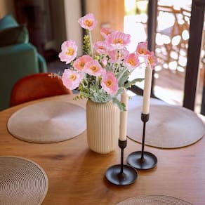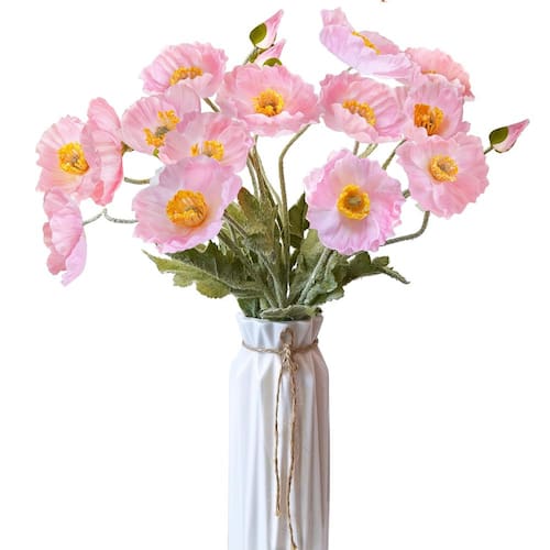 As flores de papoulas são um símbolo de esperança e amor. Representa amor simples, elegante e puro. Cores clássicas disponíveis: branco, champanhe, coral, laranja, laranja escuro, cores mistas. As cores das flores falsas podem ser ligeiramente diferentes das imagens devido a diferentes locais de luz e fotografia. Flores flocadas cairão restos, então tenha cuidado antes de comprá-las. Vantagens: as flores artificiais são duráveis e maleáveis, dando a você maior liberdade criativa. Os amantes de flores que são alérgicos ao pólen podem ter certeza de usá-lo. A flor de papoula pode ser usada como decoração sozinha ou com outras flores e plantas. Aplicação: decoração de casa: mesa de jantar, balcão de cozinha, entrada, manto, banheiro, varanda, etc. Presentes: flores falsas são a escolha de presente para o Dia dos Namorados, Dia das Mães, Ação de Graças, aniversários etc. Outros: casamento, chá de bebê, festa, etc. decoração - Material: papoulas artificiais são feitas de seda e o caule é feito de plástico com um fio de ferro dentro. É fácil de dobrar para qualquer tamanho. As hastes têm uma textura difusa que torna essas flores falsas mais realistas. - Tamanho e embalagem – A altura total das flores de papoulas é de 59 cm. 5 peças de flores de papoula de haste única por item. Cada haste tem 3 flores de papoula com 1 botão de papoula. Cada flor tem 6 pétalas, exceto os pequenos botões. - Métodos de remodelação: durante o transporte de longa distância, plantas e flores artificiais podem precisar de penugem. Você pode usar um secador para afofar. - Vantagens – Estas flores artificiais são uma adição maravilhosa e de baixa manutenção para qualquer lugar. Elas não precisam de cuidados cuidadosos e não murcham. A flor de seda não é tão frágil quanto as flores frescas, o que é mais propício para bricolage. - Atenção: as hastes têm a penugem para criar uma textura realista do que apenas uma haste de plástico e ela se soltará ligeiramente. Ao arrumar as flores, coloque algo embaixo delas para evitar manchar sua mesa ou chão.