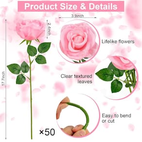50 peças de rosas artificiais a granel realistas rosas de seda com hastes longas flores falsas para casamento buquê de noiva DIY mesa centro de mesa arranjo dia dos namorados decoração de casa Especificações: Material: seda e plástico de qualidade Cor: rosa Tamanho: O comprimento total das flores de rosas falsas é de 43 cm; o diâmetro da cabeça das rosas falsas é de 9 cm Quantidade: 50 rosas falsas Características: - A rosa falsa realista permanece brilhante e bonita ano após ano. É a decoração perfeita durante todo o ano. - As rosas artificiais são adequadas para suas mesas chatas em seu escritório e sala de estar, trazendo mais vitalidade para sua vida e aproveitando sua vida! - As flores de rosa de seda são um presente especial para seus amigos, familiares e você mesmo, seus amigos ficarão agradavelmente surpresos! - Rosas falsas são ótimas decorações para seu casamento, festa, celebração de nascimento e outras cerimônias, criam uma atmosfera única e deixam uma impressão profunda. - Quantidade abundante: o conjunto de decoração do Dia dos Namorados inclui 50 peças de rosas, o diâmetro da rosa falsa é de 9,9 cm e o comprimento é de 45 cm. Você terá flores artificiais suficientes para o Dia dos Namorados para atender às suas necessidades de decoração - Material confiável: as rosas falsas são feitas de seda e plástico de alta qualidade, com arame interno que pode ser dobrado ou cortado, pode ser inserido em vasos de diferentes alturas; Atenção: para um toque realista, as hastes têm espinhos artificiais, tenha cuidado com eles - Longa duração e sem manutenção: as rosas artificiais podem manter sua beleza por um longo tempo, proporcionando elegância duradoura e fácil manutenção; as rosas falsas não precisam de água, luz solar, remoção ocasional de poeira é necessária para manter a vitalidade - Decoração versátil: as flores artificiais de rosas são adequadas para a maioria dos cenários, seja decoração de casamento, buquês de noiva, mesas de jantar, decorações de parede de flores ou casa, decorações de dia dos namorados e buquê faça você mesmo, todas são boas escolhas - Presentes atenciosos: as rosas têm seu próprio significado simbólico único, tornando essas flores artificiais presentes significativos para a pessoa que você ama, como em aniversários, Dia dos Namorados, Dia das Mães e aniversários, criando memórias inesquecíveis