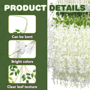 Flores simuladas também são conhecidas como flores artificiais, flores de plástico e flores secas. É feito por pessoal técnico usando materiais como pano de tela de seda, seda, plástico, etc. Frequentemente utilizado para decorar casas, salas de estar, lojas, shoppings, empresas, casamentos e outros lugares; porque não requer manutenção diária, como poda, rega ou fertilização. Independentemente das mudanças nas quatro estações, não vai cair ou murchar, sempre mantendo folhas verdes e flores vermelhas. - Material: As flores artificiais de glicínia são feitas de seda, as flores penduradas de glicínia têm uma textura sedosa. E essas flores penduradas têm hastes de plástico e fios de metal, você pode facilmente dobrar glicínias artificiais para decorar qualquer lugar que quiser - Conteúdo incluído: este pacote inclui 36 videiras brancas artificiais de glicínia, medindo 1,1 m de comprimento. Cada videira tem três ramos, medindo 60 cm de comprimento. Há 29 flores brancas de glicínia em cada ramo - Uso da cena: flores artificiais penduradas podem ser usadas em uma variedade de cenários, podem ser usadas para pendurar flores e decoração artificial. Estas flores penduradas para decoração são perfeitas para buquê de casamento, festa, decoração de escritório e decoração para centros de mesa - Facilidade de instalação: estas flores de glicínia podem ser dobradas e são muito simples de instalar, você pode instalar flores falsas como quiser - Pós-venda: para garantir que você fique feliz ao usar flores de glicínias, se tiver alguma dúvida após a compra, a qualquer momento e nós o compensaremos. Você pode confiar em nós neoact