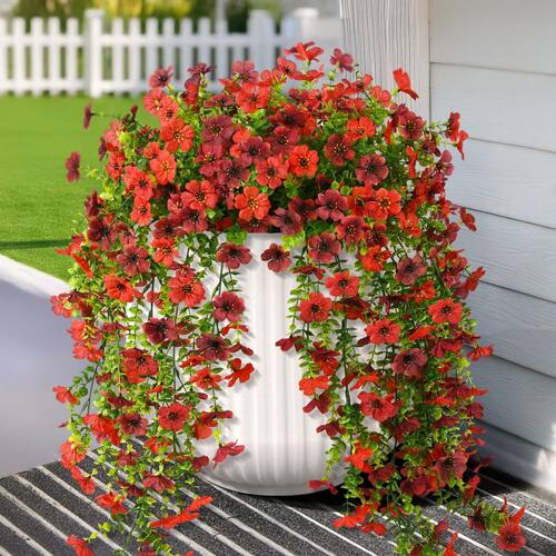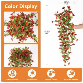 - Manutenção : sem necessidade de irrigação ou luz solar – estas flores artificiais penduradas permanecem frescas e vibrantes durante todo o ano. Com resistência aos raios UV e resistência à cor, as flores artificiais ao ar livre permanecem resistentes e vibrantes em qualquer condição climática. Aproveite sua beleza sem manutenção e o incômodo de regar