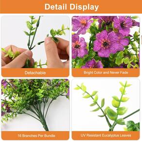 - Resistente a UV: as flores falsas para pendurar são feitas de tecido de seda e plástico de alta qualidade, resistentes a UV e todas as intempéries, à prova d'água e não desbotam ao sol e tempestades. As flores não produzem pólen ou reações alérgicas, ideais para pessoas alérgicas