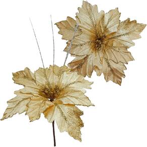 Kit 12 Flores Decorativa Dourada de 40cm;