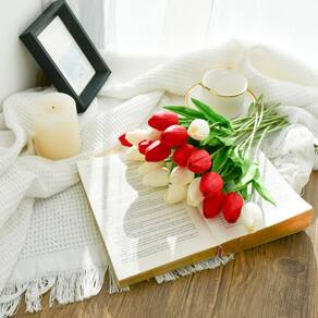 Flores falsas de seda de tulipa artificial Mandy em vermelho e branco