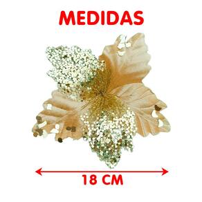 O Ramo de Flores Douradas 18cm é perfeito para enfeitar árvores de Natal, guirlandas, arranjos e centros de mesa, trazendo brilho e charme para o ambiente