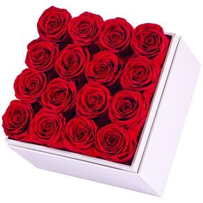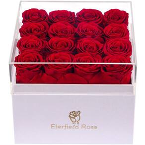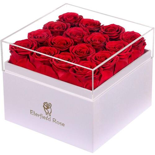 - Caixa de rosas elegante: nossa luxuosa caixa branca quadrada com tampa de acrílico transparente facilita a apreciação das flores eternas. Cada caixa contém 16 rosas imortais, o que torna toda a caixa de rosas mais cheia e extremamente atraente.