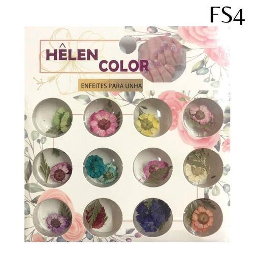 Caixa com 12 PARES de flores secas Helen Color do modelo FS4 para utilizar em decorações de unhas, principalmente para a técnica de encapsular.