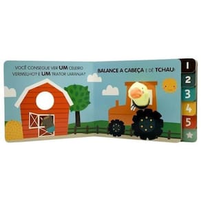 Siga o patinho e seus amigos enquanto eles balançam a cabeça e dão tchau pela fazenda! Um livro divertido para crianças pequenas com dedoche fofinho. Permite que o pequeno leitor associe os desenhos aos nomes dos animais e aos números. Vem também com um menu em abas para que os dedinhos possam ir direto para as páginas escolhidas. Um jeito interativo de estimular a linguagem e o tato.
