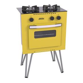 Fogão portátil 2 bocas com mesa de vidro, trempes individuais esmaltadas, forno Easy Clean com visor, puxador em alumínio, alimentado a gás GLP.Tipo