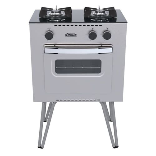 Fogão portátil 2 bocas Mini Cook Inox, mesa de vidro, trempes esmaltadas, forno Easy Clean com visor, puxador em alumínio, para gás GLP baixa pressão.Tipo