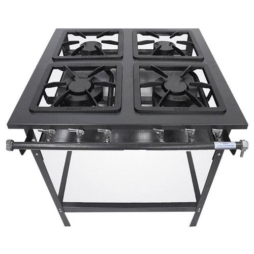 Indicado para restaurantes e cozinhas industriais de médio porte, o Fogão 4 Bocas 2 Bocas Duplas Stand Baixa Pressão conta com quadro superior estampado com perfil 7, registros em latão forjado e tubo de distribuição de gás com entrada reversível.