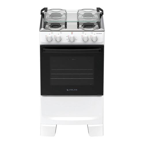 Fogão 4 Bocas à Gás Atlas Coliseum Plus com Mesa de Inox Branco - Sem voltagem