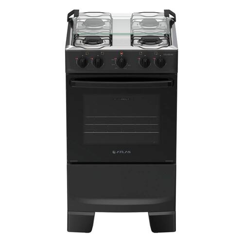 Fogão 4 Bocas à Gás Atlas Coliseum Plus com Mesa de Inox Preto - Sem voltagem