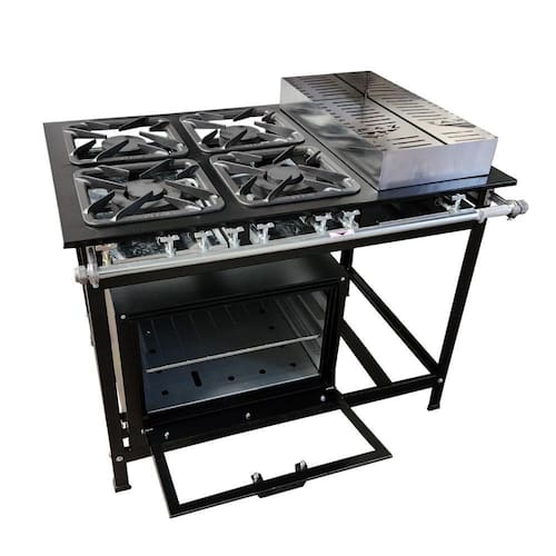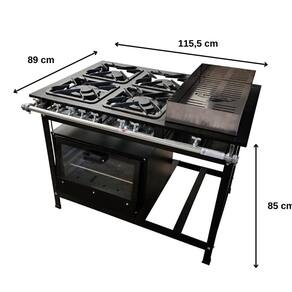 Esse Fogão conta com sua mesa toda estampada, o que impede o acúmulo de resíduos em suas emendas, garantindo máxima higiene e segurança, conta também com banho maria de 70x30 cm.