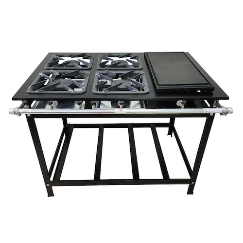 Esse Fogão conta com sua mesa toda estampada, o que impede o acúmulo de resíduos em suas emendas, garantindo máxima higiene e segurança, conta também com chapa bifeteira em ferro fundido de 70x30 cm.