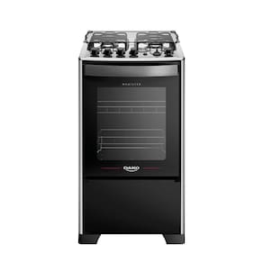 Apresentando queimadores potentes, incluindo a tecnologia de Dupla Chama para um cozimento mais rápido e uniforme, este fogão atende a todas as suas necessidades culinárias. Seu amplo forno de 60 litros conta com duas prateleiras (uma auto deslizante), isolamento térmico e a função Grill, ideal para dourar e grelhar seus alimentos com perfeição. A robustez é garantida pelas grades duplas de piatina, que oferecem máxima ao movimentar as panelas.