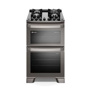 Possui dois fornos independentes para que você tenha mais rapidez e liberdade na hora de preparar suas receitas favoritas e deixa sua cozinha mais elegante, graças à cor cinza e ao design moderno.