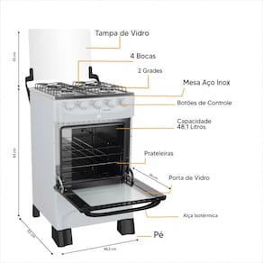 Fogão a Gás 4 Bocas Branco Bivolt com Forno 48L