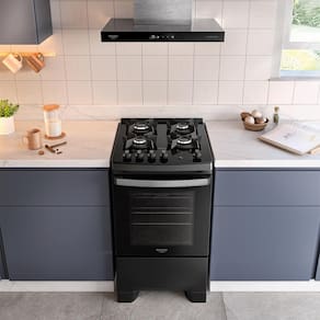 O **puxador em alumínio escovado**, além de ergonômico, dá um toque a mais de sofisticação no design. A **prateleira deslizante** torna ainda mais fácil colocar e retirar suas receitas com total praticidade. O **visor amplo** do forno permite acompanhar o preparo sem precisar abrir a porta, e o acabamento **Limpa Fácil** deixa a limpeza ainda mais rápida e descomplicada.