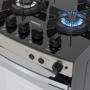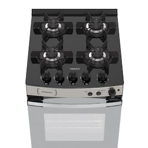 Tipo: Fogão de Piso Acendimento: Automático Queimadores: 1 Grande e 3 Médios Trempe dos Queimadores: Individual Luxo Esmaltada Mesa Queimadores: Vidro Preto Base das Trempes: Esmaltada na cor Preta Botões: Removíveis Válvula de Segurança: Sim Luz no Forno: Sim Prateleiras do Forno: Duas Auto Deslizantes Revestimento do Forno: Esmalte Easy Clean Temperatura: 5 posições de 180C Até 290C Função Grill: Sim Timer Grill: Sim Timer Gás: Não Espeto Giratório: 1 Espeto removível Bandeja Coletora de Resíduos: Sim Porta Removível: Sim Porta do forno: Vidro Panorâmico Espelhado Vidro Duplo na Porta: Sim Puxador da Porta: Alumínio Polido Estufa: Móvel com Vidro Espelhado Puxador da Estufa: Alumínio Polido Entrada de Gás: Uma Entrada(Lado Esquerdo Visto de Frente) Cores das Laterais: Preto Fosco Marca: Venax