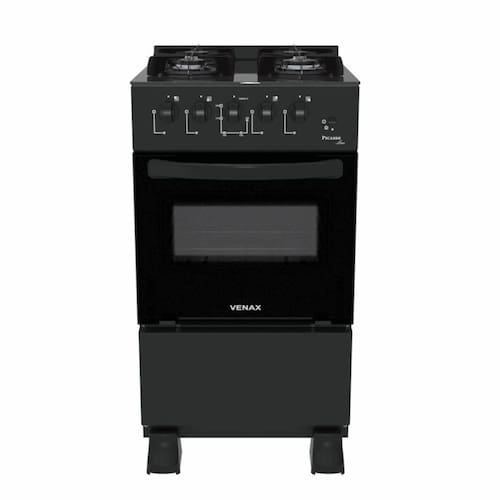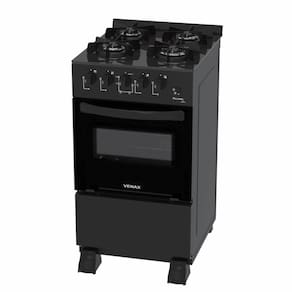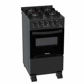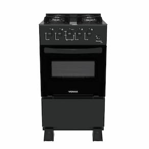 Tipo: Fogão de Piso Acendimento: Automático Queimadores: 1 Grande e 3 Médios Trempe dos Queimadores: Individual Esmaltada Mesa Queimadores: Vidro Preto Base das Trempes: Esmaltada na cor Preta Botões: Removíveis Válvula de Segurança: Sim Luz no Forno: Não Prateleiras no Forno: Uma Regulável Revestimento do Forno: Esmalte Easy Clean Temperatura: 5 posições de 180C Até 290C Função Grill: Não Timer Grill: Não Timer Gás: Não Espeto Giratório: Não Bandeja Coletora de Resíduos: Não Porta Removível: Não Porta do Forno: Vidro Panorâmico Vidro Duplo na Porta: Sim Puxador da Porta: Aço na Cor Preto Fosco Estufa: Não Entrada de Gás: Lado Esquerdo Visto de Frente Cores das Laterais: Preto Fosco Marca: Venax
