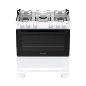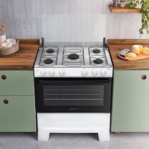 O Fogão 5 Bocas de Piso com Mesa de Inox une design moderno e alta performance com 10,34 kW de potência total e acendimento automático. Equipado com botões Front Control frontal a mesa e puxador ergonômico, ele oferece máxima segurança e praticidade no manuseio diário. Suas trempes dupla de arame garantem estabilidade, enquanto os pés altos facilitam a limpeza do ambiente. O forno de 82 litros possui acabamento Limpa Fácil, porta de vidro duplo e visor amplo para total controle dos seus assados. Sendo Bivolt e robusto, este modelo é a escolha funcional e elegante para transformar sua cozinha.
