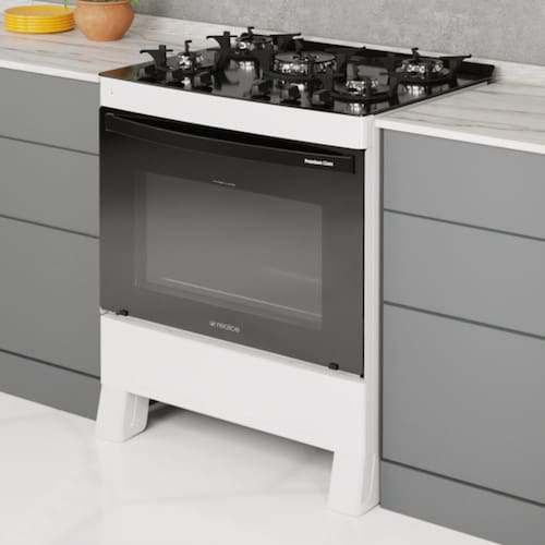 Diferenciais: - Mesa em vidro temperado de 6mm: mais resistência e segurança no uso diário, além de um visual moderno que valoriza a cozinha e facilita a limpeza. - 5 bocas com trempes de ferro fundido com seis pontos de apoio: proporcionam melhor estabilidade para panelas e mais segurança durante o preparo das receitas. - Queimador central com tripla chama Sabaf: oferece maior potência e agilidade no preparo das receitas, sendo ideal para panelas maiores e cozimentos que exigem mais intensidade. - Forno com 94 litros de capacidade: espaço ideal para preparar diferentes receitas com praticidade no dia a dia. - Tecnologia 100% Cleartec no forno: facilita a limpeza interna e evita o acúmulo de gordura. - Amplo visor e luz interna no forno: permite acompanhar o preparo dos alimentos sem precisar abrir a porta. - Puxador em alumínio escovado: mais resistência e um visual moderno que valoriza o design do produto. - Manipuladores ergonômicos e texturizados com acendimento automático total: oferecem controle preciso da chama e mais conforto no manuseio. - Alimentação: gás GLP. - Voltagem: Bivolt (127V/220V). - Ignição automática: acendimento rápido e prático.