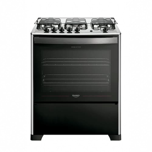 O Fogão 5 Bocas Dako Magister Style é a escolha perfeita para quem busca um eletrodoméstico moderno, funcional e com design sofisticado. Com mesa em inox, acabamento em vidro serigrafado e puxador em alumínio escovado, ele une estilo à eficiência. Seu forno de 100 litros com prateleiras deslizantes e queimador Tripla Chama de 3,3 kW garante mais agilidade no preparo das refeições para toda a família.