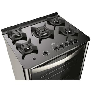 Para ter mais agilidade na cozinha e ainda dar um toque de sofisticação ao ambiente, o Fogão a Gás de Piso com 5 Bocas Fischer Gran Cheff é uma ótima opção! O produto oferece 5 queimadores com tecnologia italiana de alta performance e eles operam da seguinte maneira: 1 é tripla chama, com 3750 W de potência, 1 é rápido, com 2850W, e 3 são semirrápidos, com 1830W. O item apresenta mesa de vidro temperado, trempes em ferro fundido esmaltadas, que trazem mais robustez e segurança. O forno tem capacidade para 110 Litros, possui esmaltação especial, que facilita a limpeza. A porta apresenta vidro duplo, que impede a fuga de calor e economiza tempo e energia, além de dois estágios de abertura, o que o torna mais seguro. As duas grades são cromadas ajustáveis, deslizantes e removíveis. Aproveite também a luz interna para melhor visualização dos alimentos. Adquira logo o seu e inove no cardápio!