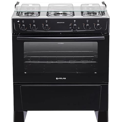 Possui mesa em inox, tampa de vidro na mesa, grades duplas de aço esmaltado, acendimento automático e botões removíveis que facilita na hora da limpeza. 2 queimadores de 1,7kW, 2 queimadores Família de 2,0kW e 1 queimador Mega Chama de 3,0kW. O forno possui visor amplo na porta, que permite enxergar tudo o que está dentro, acabamento limpa fácil, 1 grade deslizante e porta com vidro duplo - que preserva o calor.