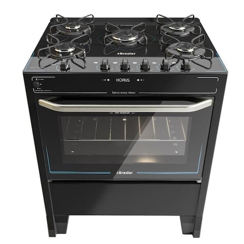 Fogão 5 Bocas Braslar Automático Mesa De Vidro Horus Top Control Preto Bivolt