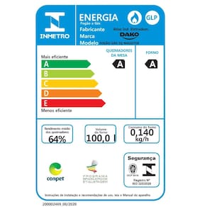 Características: Mesa de vidro Forno amplo, visor Manípulos removíveis Capacidade do forno de 100 litros 5 Bocas Não possui tampa Trempes individuais em ferro fundido com 6 pontos 2 Grades de forno