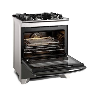 Capacidade do Forno e Porta Inteira em Vidro: Acompanhe o preparo de suas receitas sem ter que abrir a porta do forno. Grill: Finalize suas receitas com o grill para gratinar e dourar a superfície dos alimentos com mais textura.