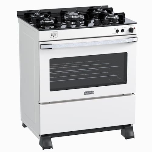Ficha Técnica: Tipo: Fogão de Piso Alimentação: Gás GLP Baixa Pressão (A conversão para Gás Natural não é coberta pela garantia) Acendimento: Automático Queimadores: 1 Tripla chama, 2 Grandes e 2 Médios Trempes dos Queimadores: Individual Luxo Esmaltada Mesa Queimadores: Vidro Preto Base das Trempes: Esmaltada na cor Preta Botões: Removíveis Válvula de Segurança: Sim Luz no Forno: Sim Prateleiras do Forno: Duas Auto Deslizantes Revestimento do Forno: Esmalte Easy Clean Temperatura: 5 posições de 180C Até 290C Função Grill: Sim Timer Grill: Sim Timer Gás: Não Espeto Giratório: 2 Espetos removíveis Bandeja Coletora de Resíduos: Sim Porta Removível: Sim Porta do forno: Almofada com visor transparente Vidro Duplo na Porta: Sim Puxador da Porta: Alumínio Polido Estufa: Fixa Puxador da Estufa: N/A Entrada de Gás: Uma Entrada(Lado Esquerdo Visto de Frente) Cores das Laterais: Branco Marca: Venax Tensão: 127V ou 220V Frequência: 60Hz Classificação Energética: "A" Etiquetas: ENCE e CONPET Garantia: 1 Ano Potência do Grill: 1250W Potência do Queimador do Forno: 3,30kW Potência Queimadores Mesa: 3,0kW (tripla chama); 1,80 kW (Queim.Grande); 1,35kW (Queim.Médio) Dimensões Internas do Forno(LxPxA): 648x470x290(mm) Volume do Forno: 88,3L