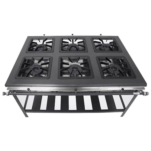 O Fogão Industrial 6 Bocas Extra é fabricado para atender grandes restaurantes e cozinhas industriais, os mesmos tem uma estrutura robusta e uma distância maior entre as grelhas para suportar panelas de porte grande.