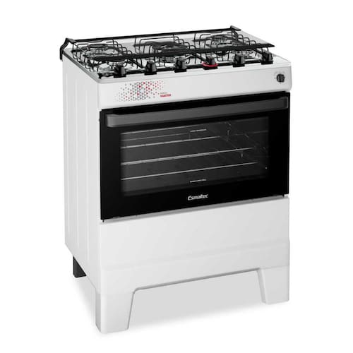 - Acendimento automático: mais agilidade no uso; - Mesa em aço inox: resistência e facilidade na limpeza; - Tampão de vidro: estilo e praticidade para sua cozinha; - Trempes duplas em aço esmaltado: estabilidade reforçada para as panelas; - Timer mecânico: controle de tempo direto no painel; - Forno Limpa Fácil com 84 litros de capacidade: mais espaço para grandes receitas; - 1 grade deslizante + 1 grade autodeslizante: mais praticidade e segurança no forno; - Porta do forno em vidro total com vidro interno removível: limpeza e visual moderno; - Pés altos e retos com encaixe fácil: estabilidade e limpeza facilitada.