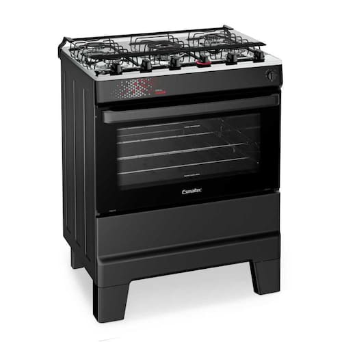 - Acendimento automático: mais agilidade no uso; - Mesa em aço inox: resistência e facilidade na limpeza; - Tampão de vidro: estilo e praticidade para sua cozinha; - Trempes duplas em aço esmaltado: estabilidade reforçada para as panelas; - Timer mecânico: controle de tempo direto no painel; - Forno Limpa Fácil com 84 litros de capacidade: mais espaço para grandes receitas; - 1 grade deslizante + 1 grade autodeslizante: mais praticidade e segurança no forno; - Porta do forno em vidro total com vidro interno removível: limpeza e visual moderno; - Pés altos e retos com encaixe fácil: estabilidade e limpeza facilitada.
